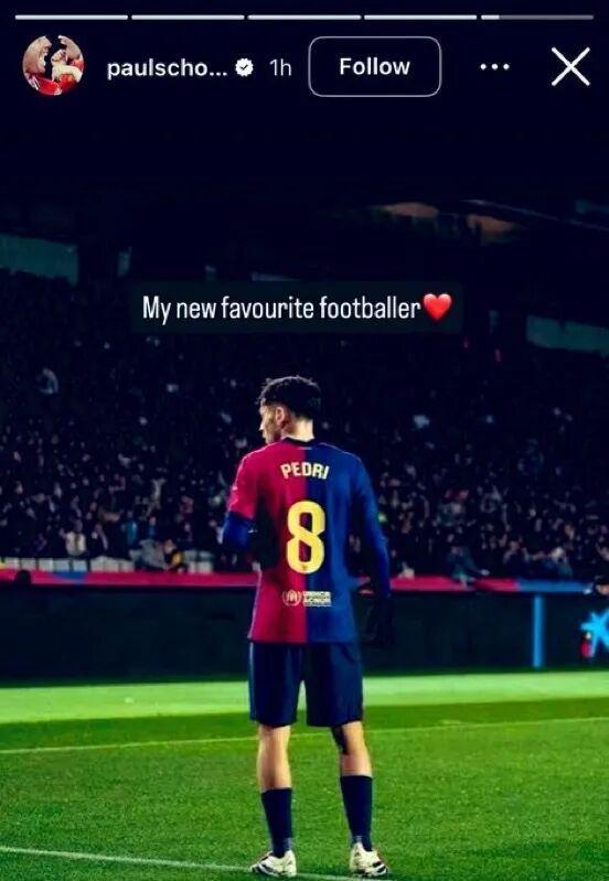 斯科尔斯Instagram:我最新钟爱的球员[心]
