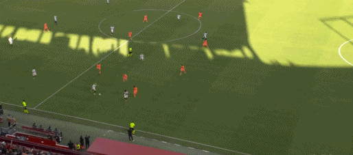 第45+4分钟,桑切斯获得单刀机会,但随后被阿劳霍回追破坏