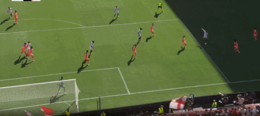 第90+6分钟,阿科-亚当斯推射破门!塞维利亚4-1巴萨