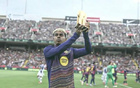 荣耀时刻,亚马尔在对阵皇社赛前向主场球迷展示科帕奖